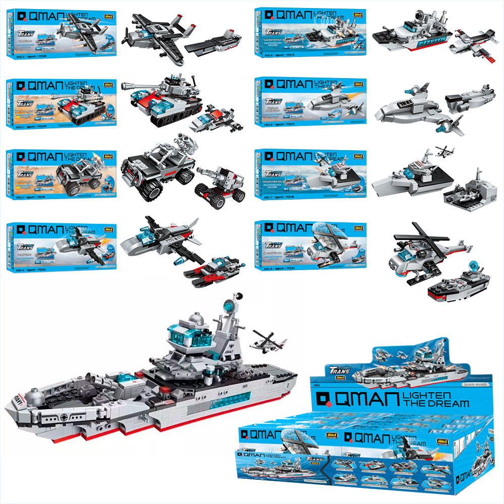 Конструктор Qman 1411 (144шт) військовий транспорт, від 71дет, в кор-ці, 8шт (8видів) в дисплеї, 43,