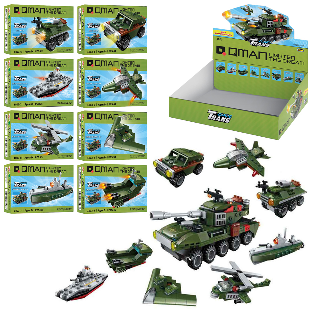 Конструктор Qman 1803 (128шт) військова техніка, від 38дет, 8шт(8видів) в дисплеї, 26,5-9-19,5см