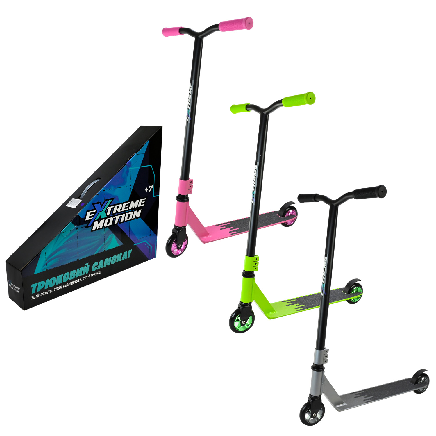 Самокат трюковий арт.TR2628 (6шт) колеса PU110мм,диск алюм 3 кольори,короб. 63*11*54 см(КІ)