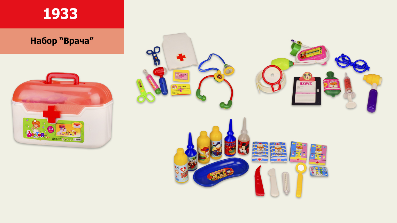 Доктор 1933 (24шт/2) 32 дет, стетоскоп, очки, шприц, в чемоданчике 25*15*15см (КИ)