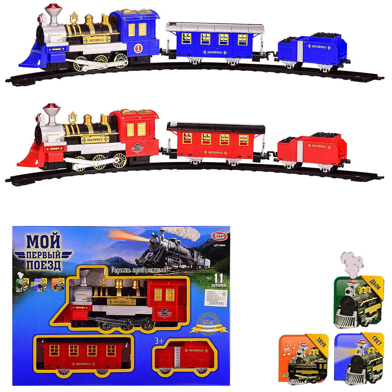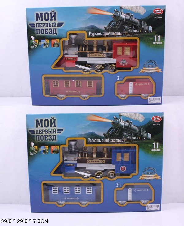 Железная дорога батар. 0644/46 (24шт) звук, дым, свет, 2 вида, в коробке 39*29*7см(КИ)