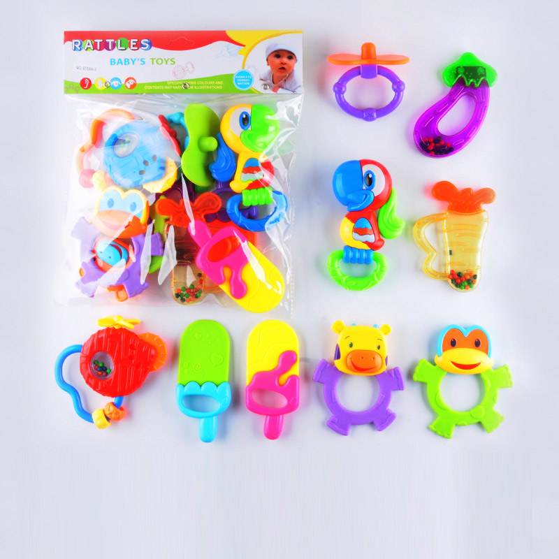 Погремушка в ручку 8358A-10 (96шт/2) 7 видов в пакете 23,5*28*5см(КИ)