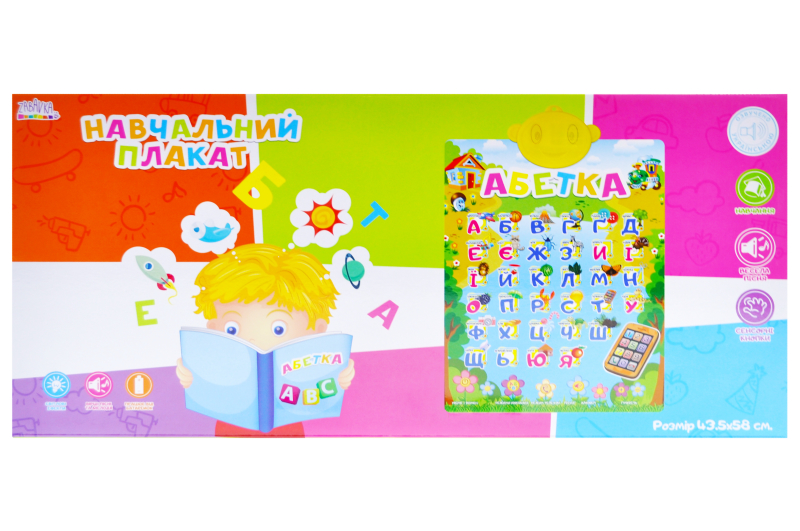 Навчальний плакат "Абетка" озвучений українською мовою, в коробці UKA-A0002 р.45*4*21,5см.(Мас)