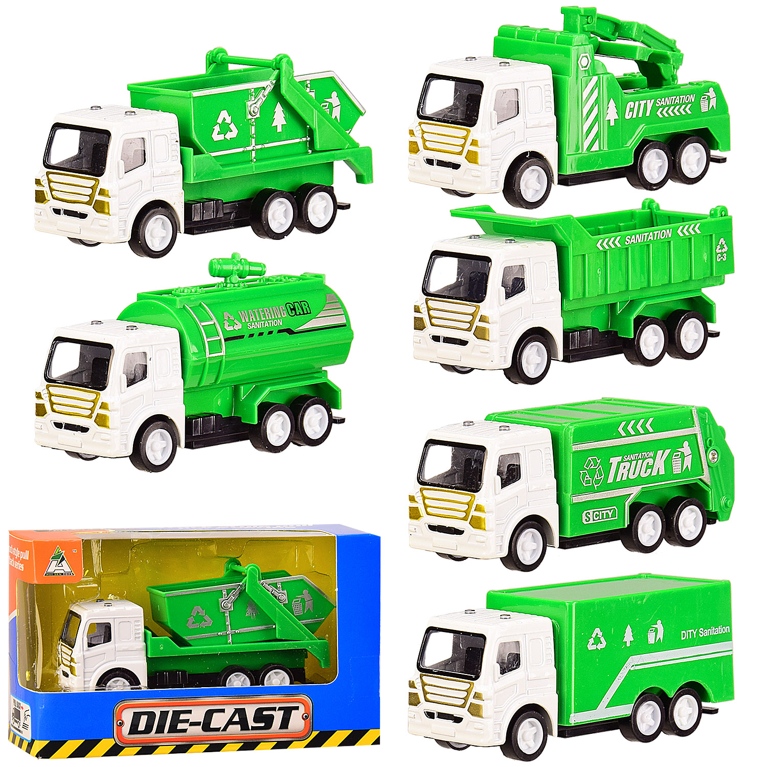 Спецтехника металл HS-616E (144шт/2) 6 видов,инерц, в коробке 13.5*5*8 см, р-р игрушки – 9.5*3*4.5(К
