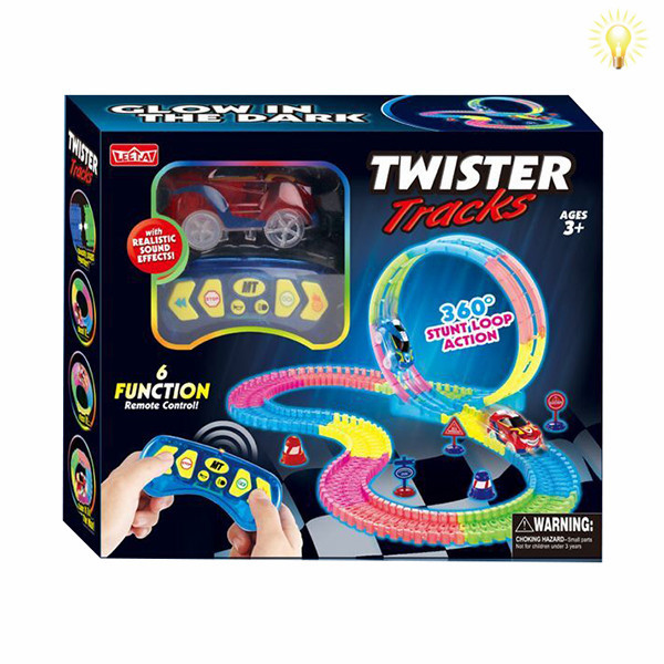 "Трек на радіокеруванні 136 (36/2шт) 134 деталі,світло, звук (38*9*26см) в коробці"
