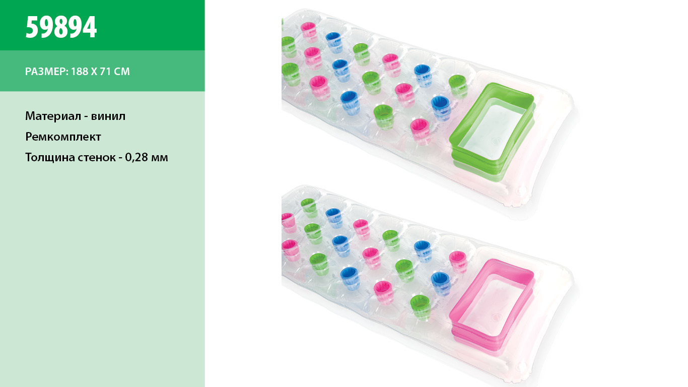 Матрац винил 59894(12шт)2 цвета,цветн.стакан,с рем.комплектом,188*71см(КИ)