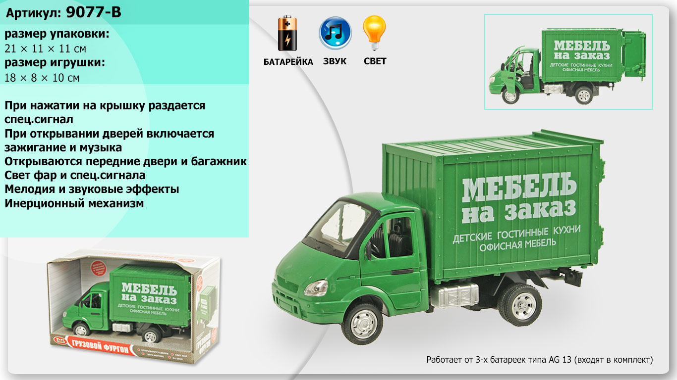Машина батар. 9077-В (24шт/2) "Газель " откр.двери,звук в кор 24*14*11см(КИ)