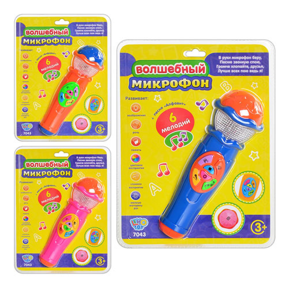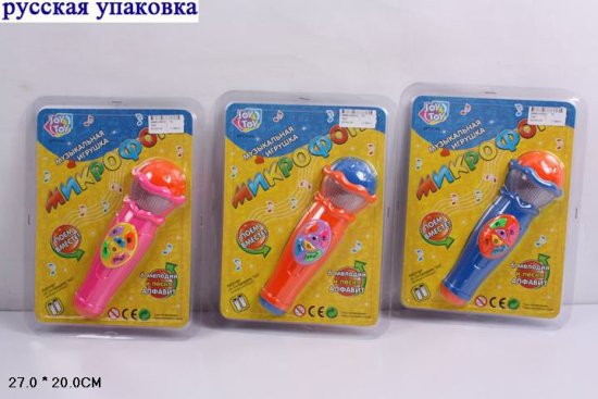 Микрофон 7043 (72шт/3)батар,3вида,6 мелодий,песенка "Алфавит" на планшете 26*19см(КИ)