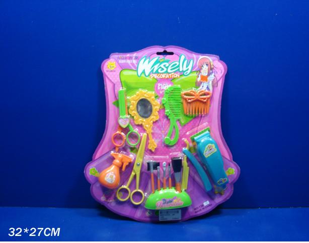 Парикмахерский набор 138A (240шт/2) расческа,зеркало,ножницы,бритва,кисточки,на планш 32*27см(КИ)