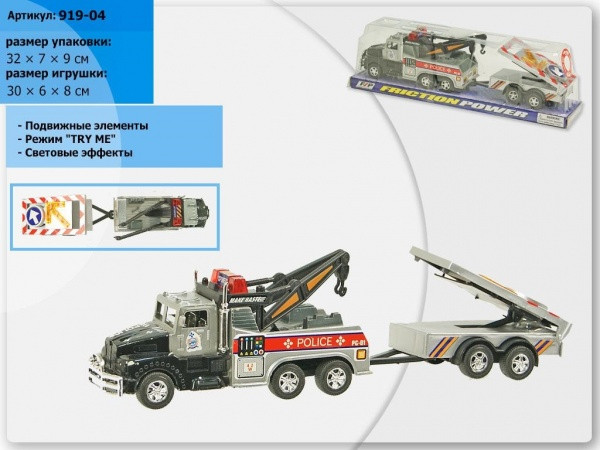Машина инерц 919-04 (96шт/2)"Эвакуатор" с прицепом под слюдой 30*6см(КИ)