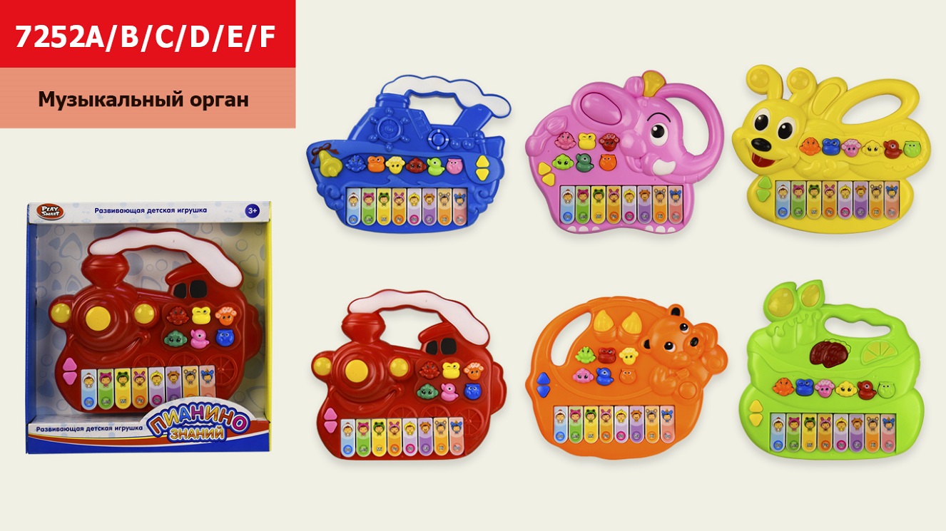 Муз.разв.орган 7252A/B/C/D/E/F(48шт/2)6 видово,25 см на бат.в коробке 25*24*1,5см(КИ)