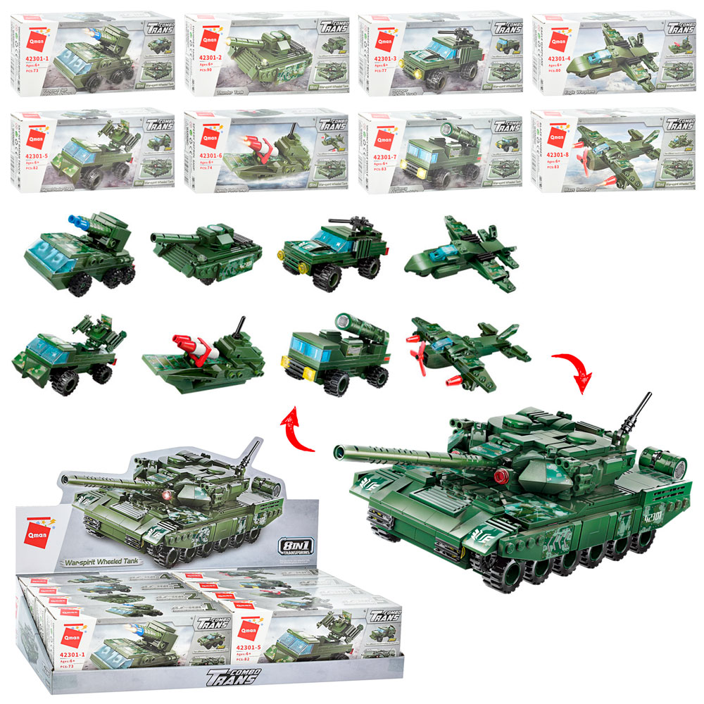 Конструктор Qman 42301 (144шт) військовий транспорт, 8шт(8 видів ) в дисплеї, 43-19-9,5см